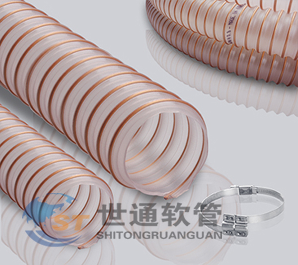 屬性:聚酯型聚氨酯(ESTER PU)軟管,帶高附著力鍍銅鋼絲螺旋加強筋。內壁平滑, 以保證物料在管內流動順暢. 和傳統的橡膠軟管和PVC軟管相比具有極高的耐磨度和使用壽命。不同規格產品的壁厚相同, 均為0,9毫米。耐礦物油、耐化學品。具有優異的耐臭氧和耐候性,低溫下仍能保持很好的柔軟度。不含鹵素